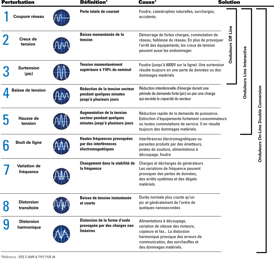 En effet, l'électricité peut subir plusieurs types de perturbations :